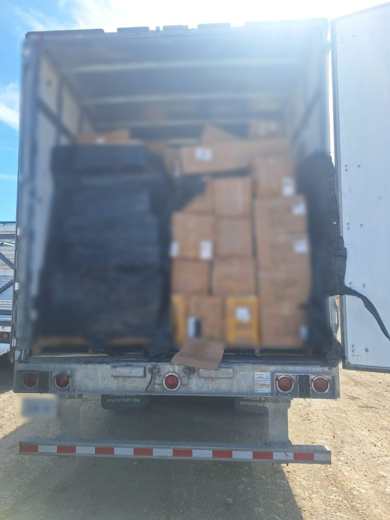 En el operativo realizado en coordinación con la Guardia Nacional y personal de la 16.ª Zona Militar, se detectó un tractocamión Kenworth modelo 2022, con placas del Servicio Público Federal, acoplado a un semirremolque modelo 2024, que transportaba la mercancía sin acreditar su estancia legal en el país, además de presentar documentación presuntamente irregular y carecer de comprobantes fiscales.