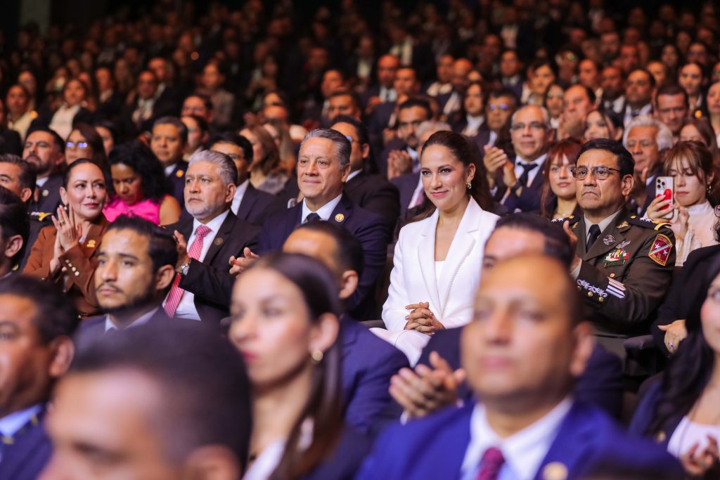 Durante su mensaje, la Mandataria Estatal refrendó su respaldo al Fiscal General, Gerardo Vázquez Alatriste, y al personal de la FGE, al subrayar que la visión del Gobierno de la Gente, la seguridad no se concibe como una acción aislada, sino como una tarea compartida.