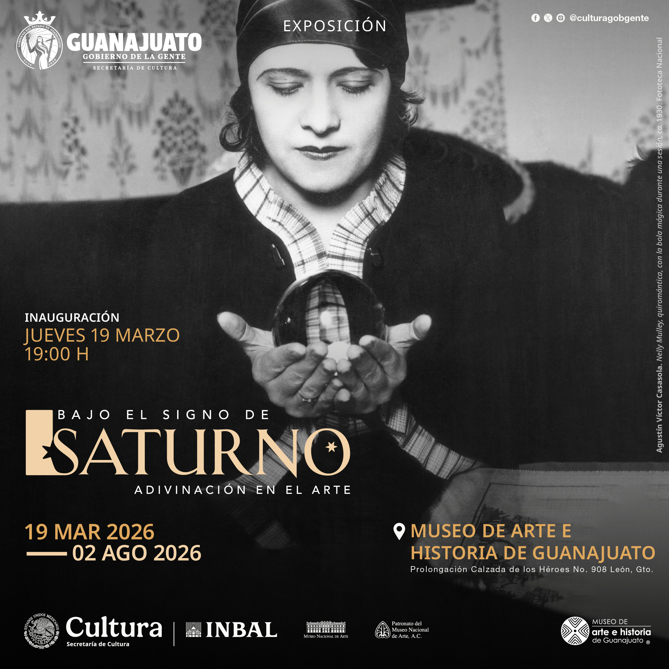 León, Guanajuato, 11 de marzo de 2026. La Secretaría de Cultura del Gobierno de México, a través del Instituto Nacional de Bellas Artes y Literatura (INBAL), la Secretaría de Cultura de Guanajuato y su Museo de Arte e Historia de Guanajuato presentan la exposición “Bajo el signo de Saturno. Adivinación en el arte”, que se inaugura el 19 de marzo de 2026, como parte del programa de itinerancias del Museo Nacional de Arte, iniciativa que impulsa la circulación del patrimonio artístico y la descentralización cultural en el país.
