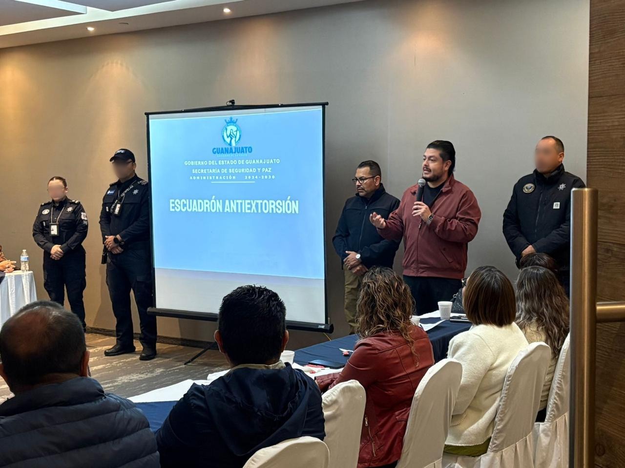 Celaya, Gto., a 12 de marzo de 2026.– La Secretaría de Seguridad y Paz, a través del Escuadrón Antiextorsión, impartió talleres y pláticas informativas dirigidas a integrantes de una asociación del sector turístico y a personal administrativo de una empresa del sector logístico, con el objetivo de fortalecer la capacidad de respuesta ante posibles intentos de extorsión.