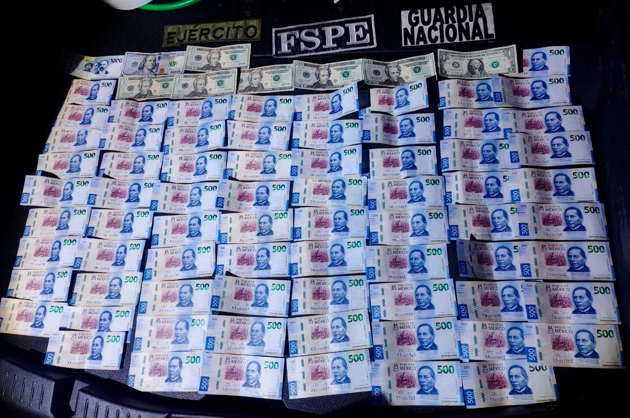 Durante la revisión se identificó a Gilberto “N”, de 32 años, con domicilio en la colonia Las Hilamas, y se localizaron 37 mil pesos en efectivo en billetes de distintas denominaciones y 221