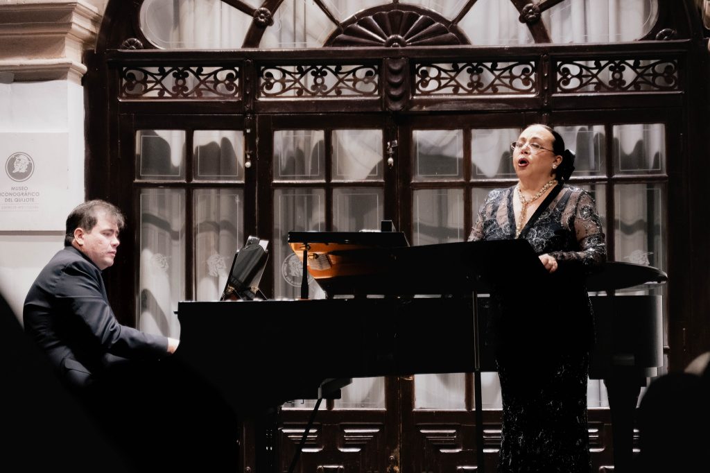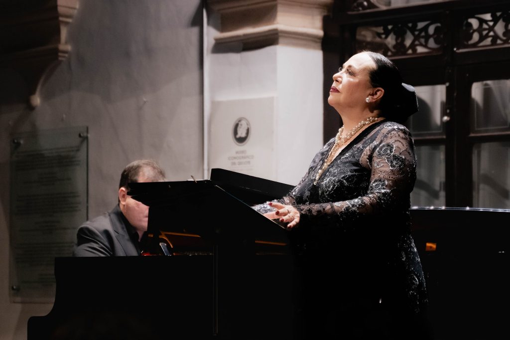La “Contralto de América”, originaria de Cortazar e inscrita en la plana mayor del bel canto mexicano desde hace más de cuatro décadas, acudió al Museo Iconográfico del Quijote, escenario de su última actuación en la capital en 2017, para compartir el programa Tierra de mis amores, junto al pianista Santiago Piñeirúa, como parte del ciclo Jueves Musicales del MIQ.
