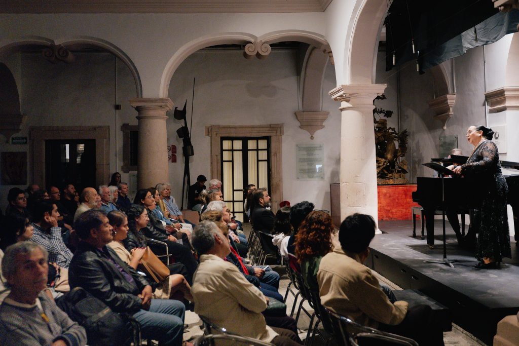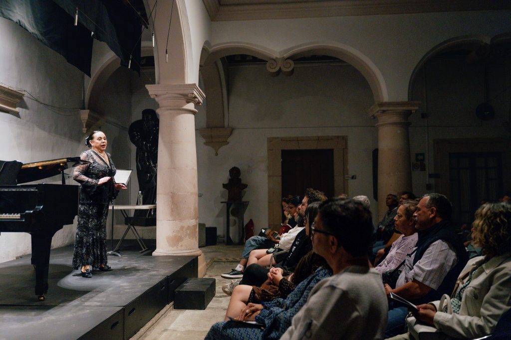 Antes de despedirse, la guanajuatense recibió de manos de Alejandra Sánchez Gutiérrez, coordinadora de Proyectos Culturales del MIQ, y de Carlos Vidaurri, curador de los Jueves Musicales del MIQ, un reconocimiento por sus 40 años de carrera profesional, “siendo una destacada cantante guanajuatense que con su voz ha iluminado cientos de escenarios en México y el mundo”.