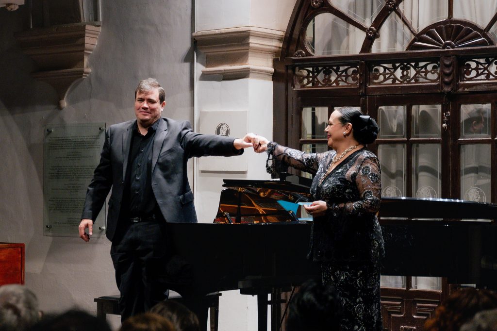Tras el intermedio, la guanajuatense, ganadora en su momento del Concurso Nacional de Canto Carlo Morelli, ofreció un entrañable paseo por la lírica de autores del terruño, empezando por Joaquín Pardavé, de quien Ana Caridad Acosta interpretó Varita de nardo y La Panchita, tras expresar su admiración por la dulzura y candidez de ambas composiciones.