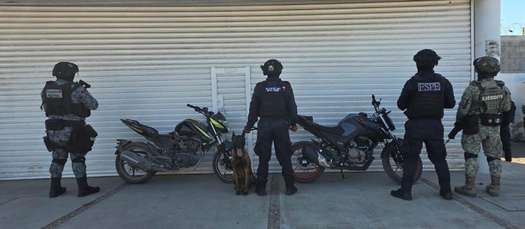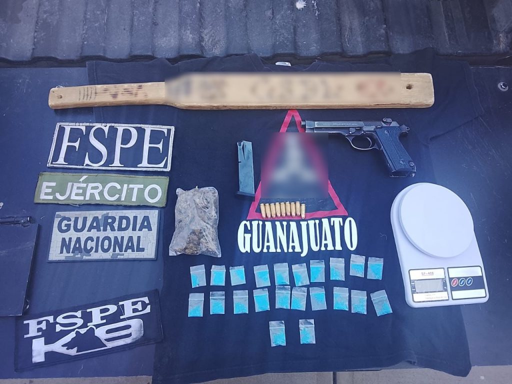Celaya, Gto., 20 de marzo de 2026.– La Secretaría de Seguridad y Paz, a través de las Fuerzas de Seguridad Pública del Estado (FSPE), en coordinación con la Unidad K9 y la Secretaría de la Defensa Nacional (DEFENSA), detuvo a dos personas en posesión de un arma de fuego, sustancias con características de droga y motocicletas con alteraciones en sus números de identificación.