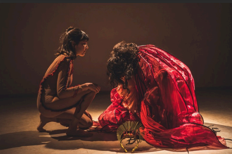 La composición conjunta del vestuario, los rituales y el movimiento genera una declaración visual de gran fuerza escénica, que apela al imaginario arquetípico y a una sabiduría ancestral femenina e intuitiva. Se trata de un dueto que encarna la experiencia visceral del despojo como vía para invocar una fuerza vital profunda y esencial.