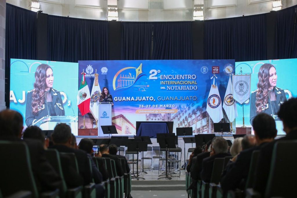 Posteriormente la Gobernadora de la Gente, Libia Dennise García Muñoz Ledo, presidió la ceremonia inaugural del “2º Encuentro Internacional del Notariado” que se lleva a cabo en la ciudad de Guanajuato del 26 al 28 de marzo en la Universidad de Guanajuato, en donde se reúnen notarias y notarios, especialistas del derecho, autoridades e instituciones de México y de distintos países.