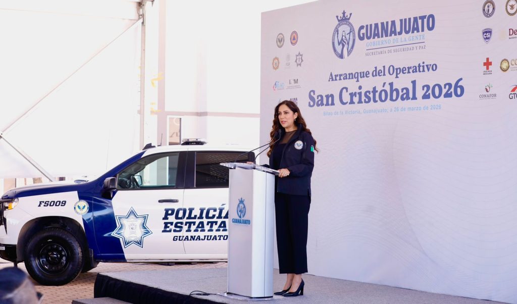 Silao, Gto., 26 de marzo de 2026.- La Gobernadora del Estado, Libia Dennise García Muñoz Ledo, encabezó el arranque del Operativo San Cristóbal 2026, una estrategia integral en la que participan más de 24 mil 954 mujeres y hombres de los tres órdenes de gobierno, con el objetivo de garantizar el orden público, la seguridad y la tranquilidad de las familias guanajuatenses y de quienes visitan la entidad durante la temporada de Semana Santa y Pascua.