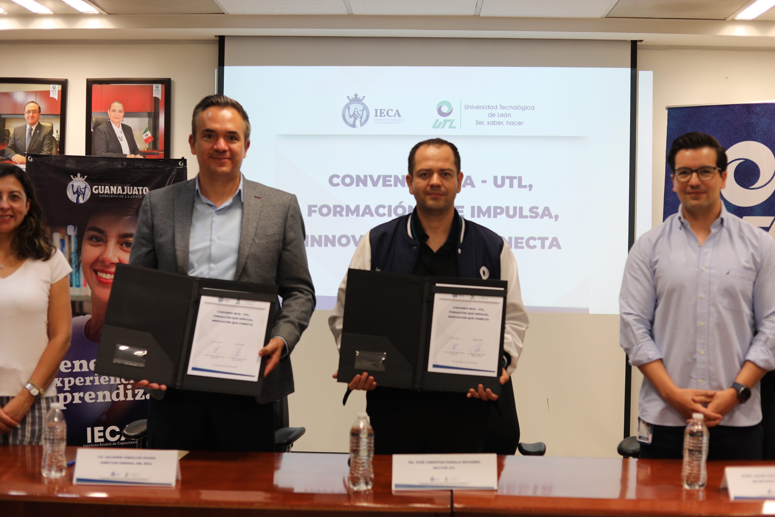 León, Guanajuato, 06 de abril de 2026. El Instituto Estatal de Capacitación (IECA) y la Universidad Tecnológica de León (UTL), firmaron un convenio para ampliar las opciones de capacitación, certificación y vinculación laboral para estudiantes y egresados, con el objetivo de fortalecer su preparación y acercarlos al mercado laboral.
