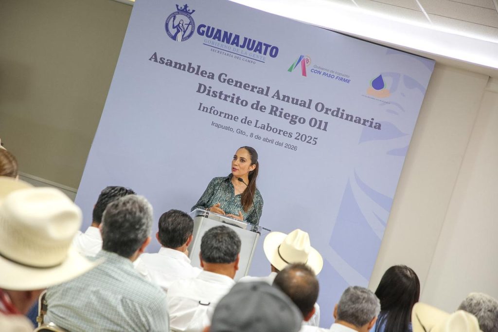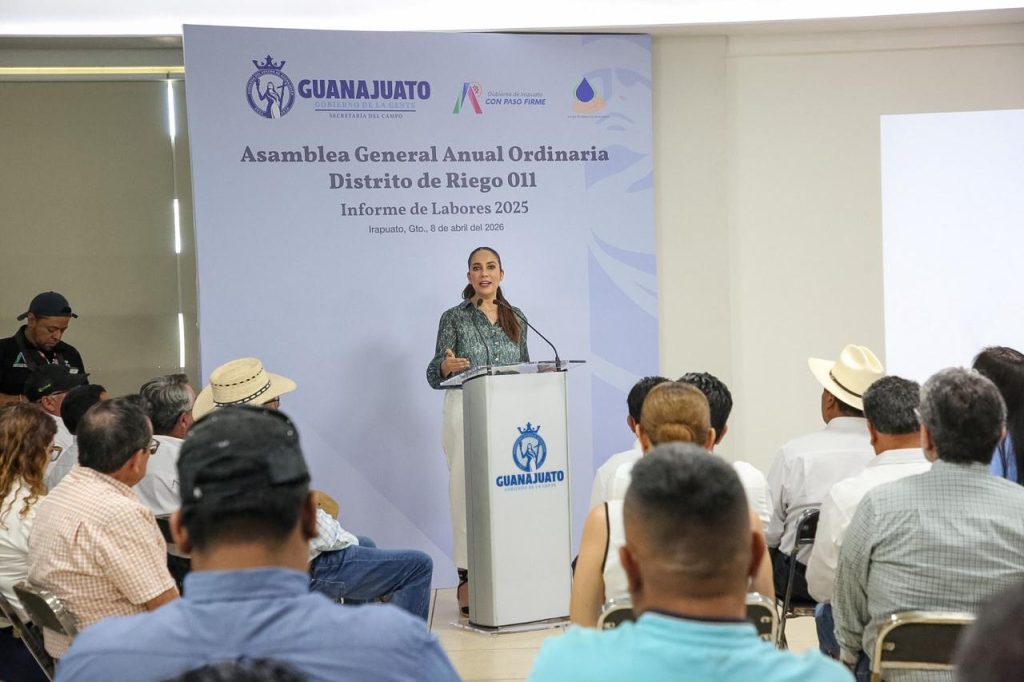 La Gobernadora quien estuvo acompañada por la Presidenta Municipal de Irapuato, Lorena Alfaro García, reconoció el liderazgo de Agustín Robles al frente de este Distrito de Riego, que es uno de los más importantes del país; abarca más de 112 mil hectáreas de cultivo en los 11 Módulos de Riego en los municipios de Acámbaro, Salvatierra, Jaral del Progreso, Valle de Santiago, Cortázar, Salamanca, Irapuato, Abasolo, Huanímaro, Corralejo, en Pénjamo, y Purísima.