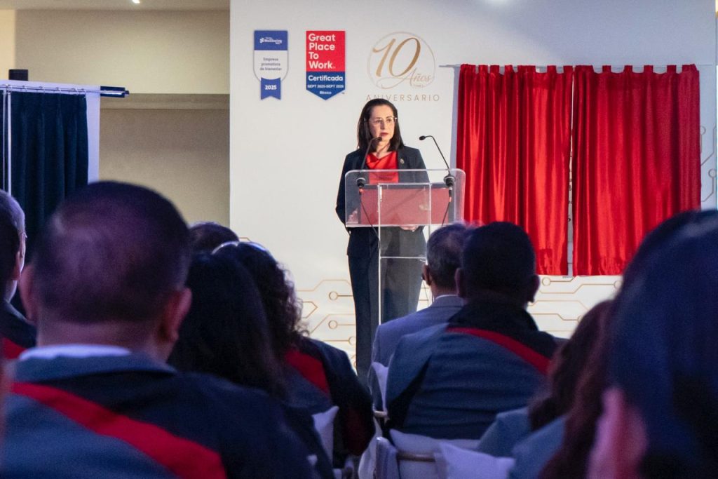 En representación de la Gobernadora de la Gente, Libia Dennise García Muñoz Ledo, la Secretaria de Economía, Claudia Cristina Villaseñor Aguilar, destacó el compromiso del Gobierno del Estado de continuar trabajando de la mano con las empresas que confían en Guanajuato, brindando certeza, continuidad y un entorno competitivo para el crecimiento de sus inversiones.