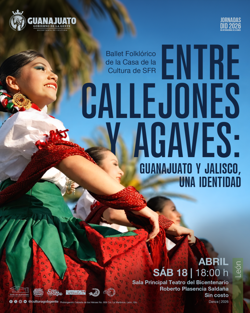 El 19 de abril, en Purísima del Rincón, se presentará Entre callejones y agaves: Guanajuato y Jalisco, una identidad, del Ballet Folklórico de la Casa de Cultura de San Francisco del Rincón, que traza un recorrido por la riqueza dancística de ambas regiones.