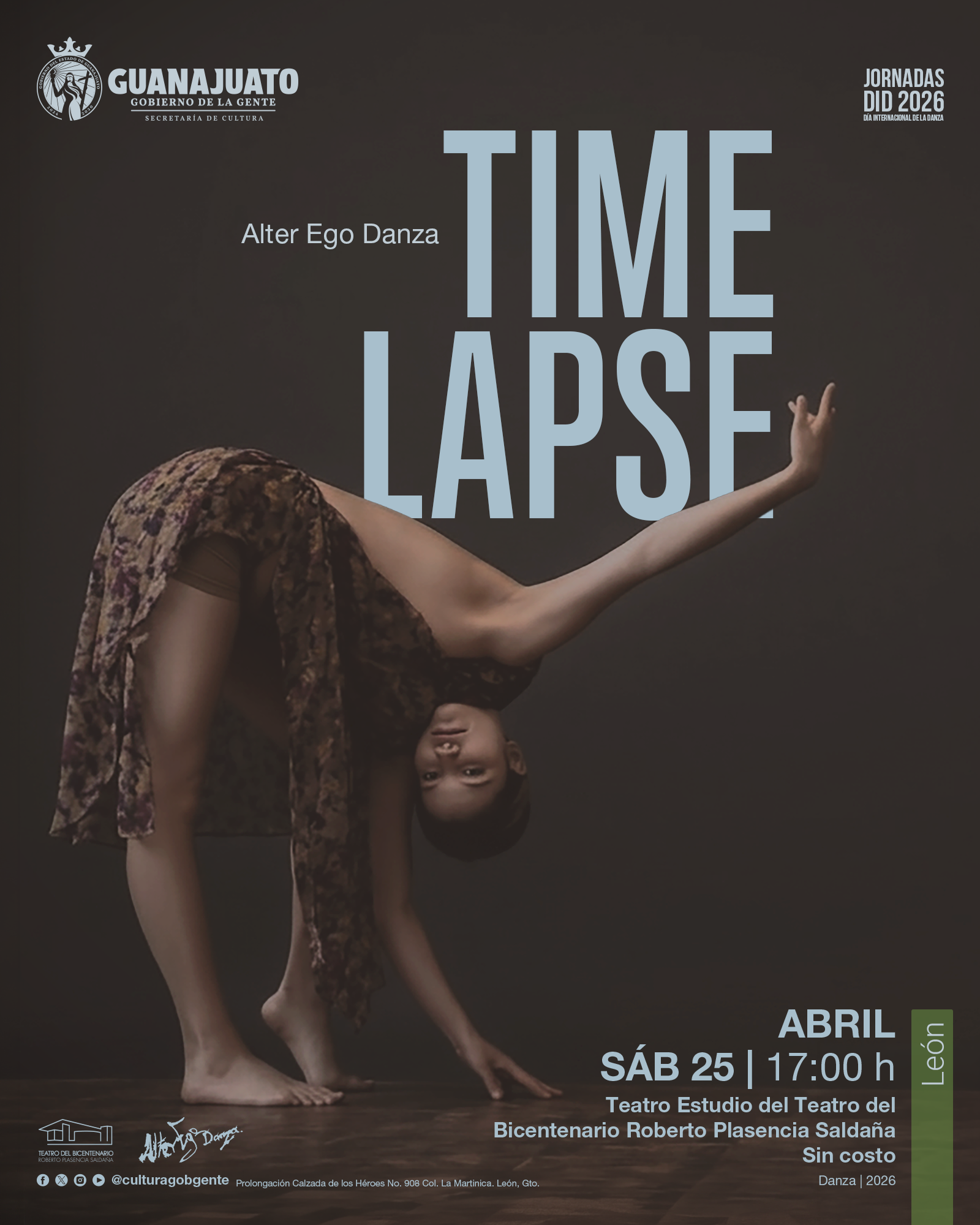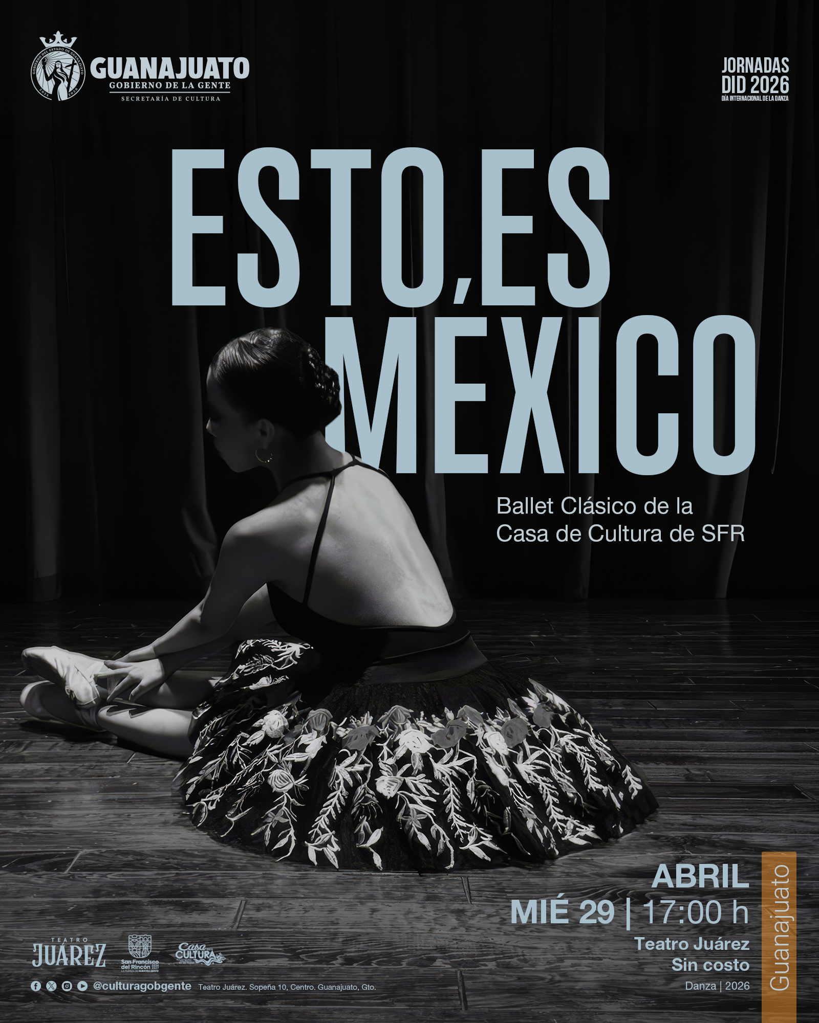 León, Guanajuato, 15 de abril de 2026. En el marco del Día Internacional de la Danza, la Secretaría de Cultura de Guanajuato presenta una amplia programación artística que se desplegará en distintas sedes del estado, consolidando a la danza como una de las expresiones fundamentales para el desarrollo cultural, la reflexión social y el fortalecimiento de la identidad comunitaria.