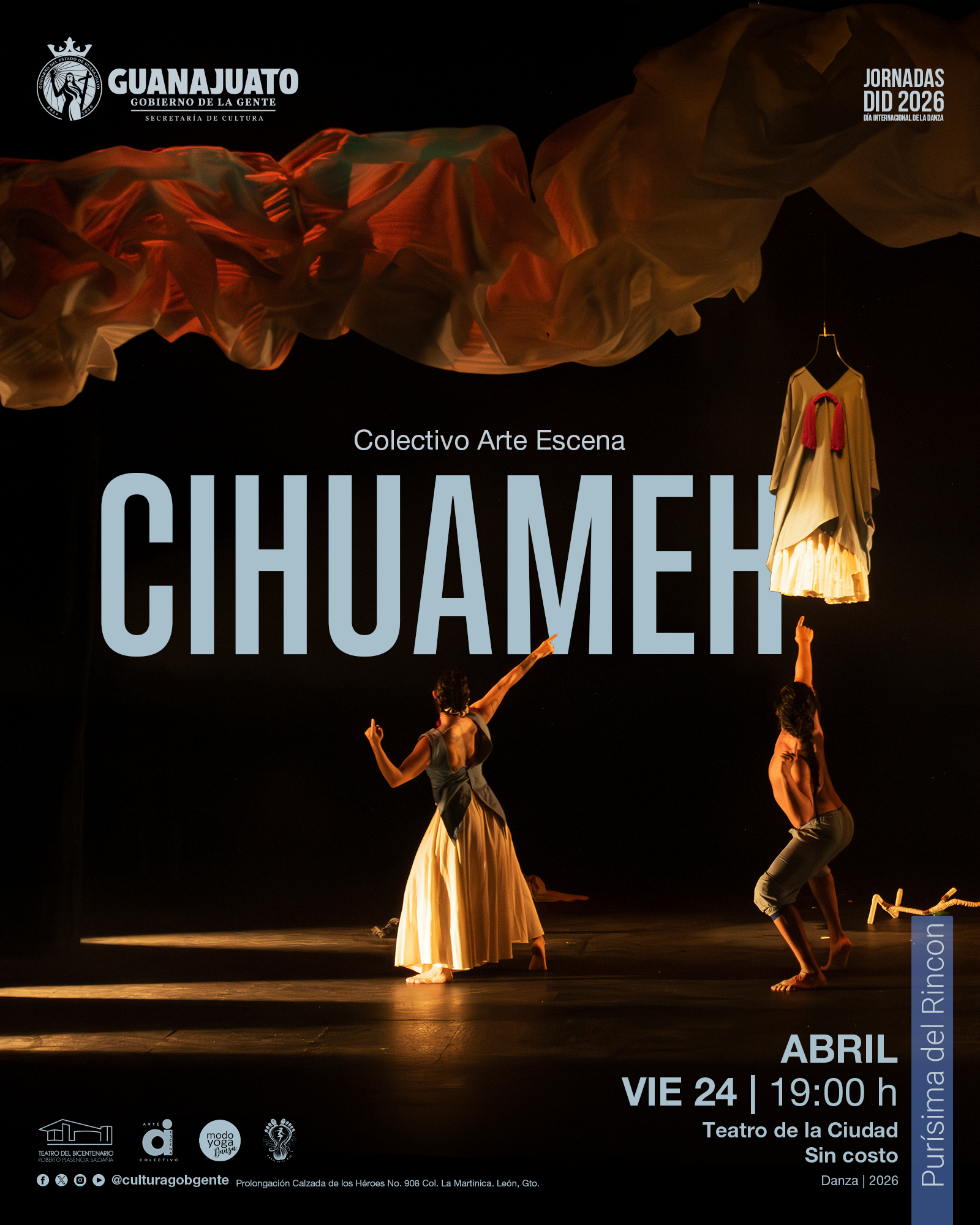 Las Jornadas por el Día Internacional de la Danza Guanajuato 2026 integran una programación diversa que se desarrollará en León, Salamanca, Guanajuato capital y Purísima del Rincón, con la participación de compañías, colectivos y artistas locales que exploran distintos lenguajes escénicos.