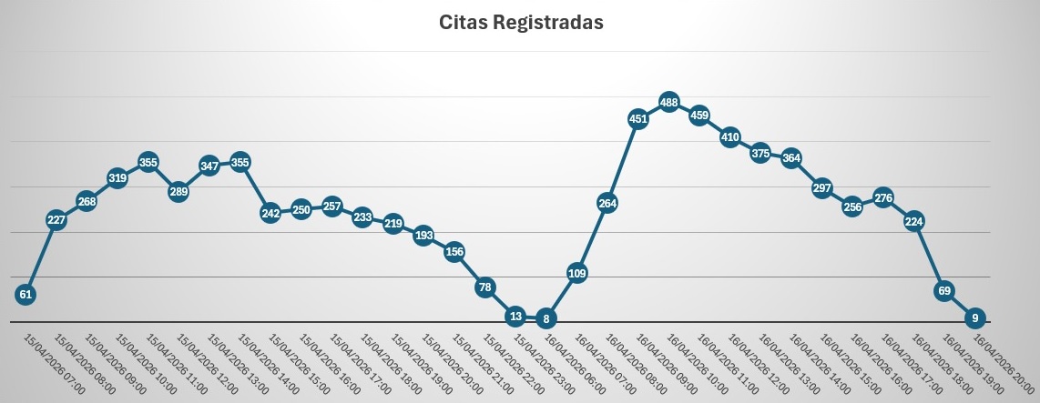 * Se alcanzó un pico de 488 citas registradas en una hora, el 16 de abril de 10 a 11 de la mañana.
