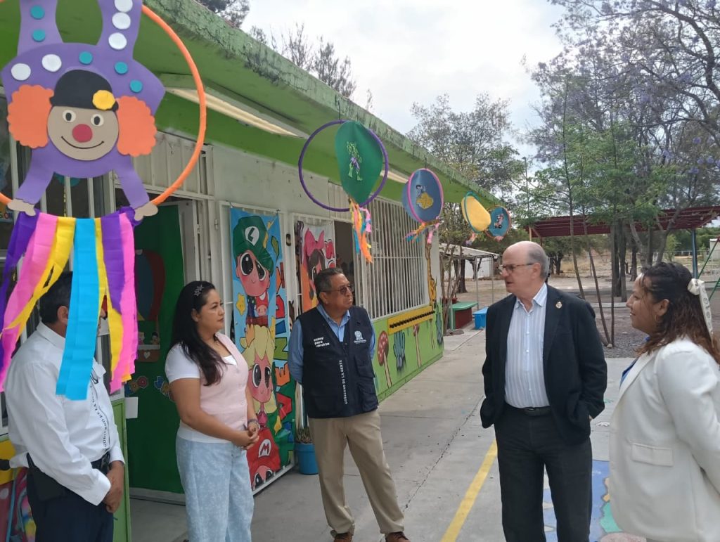 La jornada inició en el preescolar “México”, en la comunidad de El Caracol, donde ya se ofrece el primer grado de preescolar y el servicio de agentes educativos para atender a niñas y niños menores de 3 años. Desde febrero, este servicio beneficia a cinco familias de la comunidad.