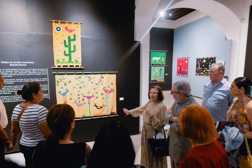 Por su parte, María Teresa Rodríguez Almazán, representante del artista David Correa, ofreció una explicación grosso modo de la exposición Molas en el arte mexicano, que se inspira en la expresión tradicional de un pueblo indígena de Panamá, que originalmente se plasmaba en el cuerpo de las mujeres, pero que después, se convirtió en un arte textil con figuras de fieltro cosidas a mano.