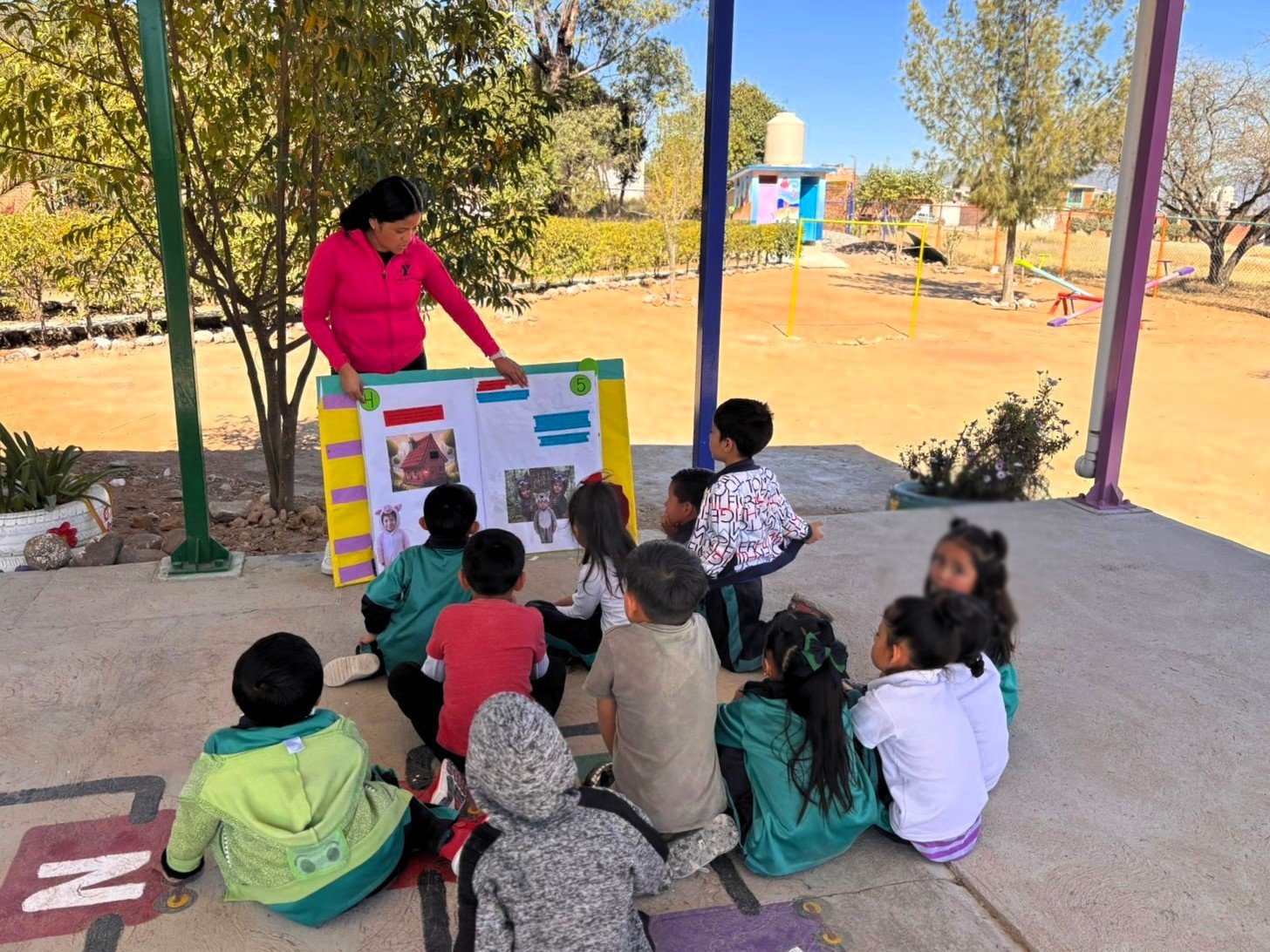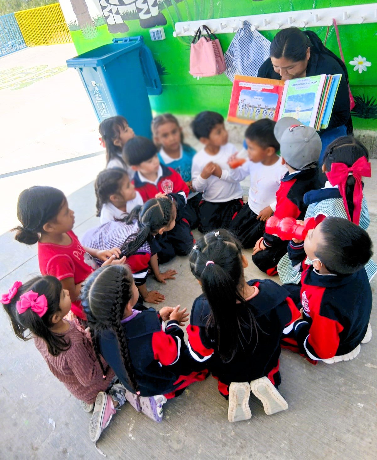 Esta dinámica con propósito comunitario incluyó un ritual especial: una despedida del cuento antes de enviarlo en un maletín decorado a otro preescolar. Una vez que los cuentos hayan recorrido los 13 preescolares, regresarán a su escuelita, llenos de mensajes de las niñas y niños de toda la zona, fortaleciendo así el sentido de comunidad y pertenencia.