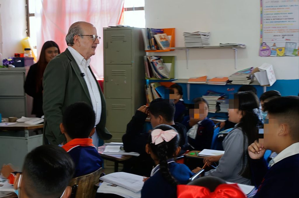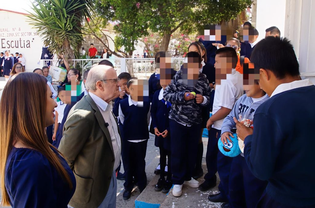 La primera escuela visitada fue la primaria Juan Escutia, donde el titular de Educación reiteró el compromiso de generar condiciones que permitan a las y los estudiantes alcanzar su máximo potencial, al impulsar estrategias que fortalezcan tanto el aprendizaje como el bienestar integral.