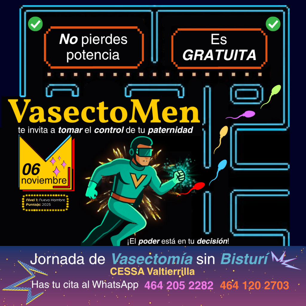 Para lograr una buena respuesta de los hombres de Salamanca y sus alrededores, se está impulsando una campaña con la participación del personaje “VasectoMen”, un héroe que promueve la decisión valiente de los hombres que eligen cuidar de su familia y de su salud.