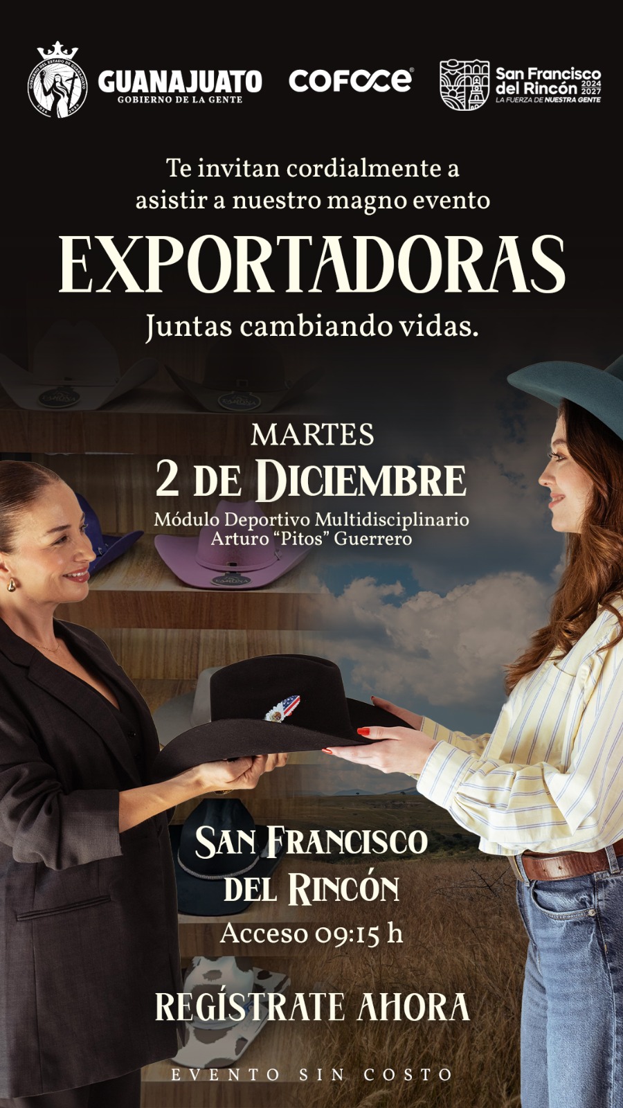 El evento se llevará a cabo el martes 2 de diciembre, en el Auditorio Arturo “Pitos” Guerrero, en San Francisco del Rincón totalmente gratuito. El registro comenzará a las 9:15 a.m., y la jornada incluirá conferencias, paneles de casos de éxito y donde se entregarán reconocimientos a 15 empresarias que han impulsado las exportaciones del estado.