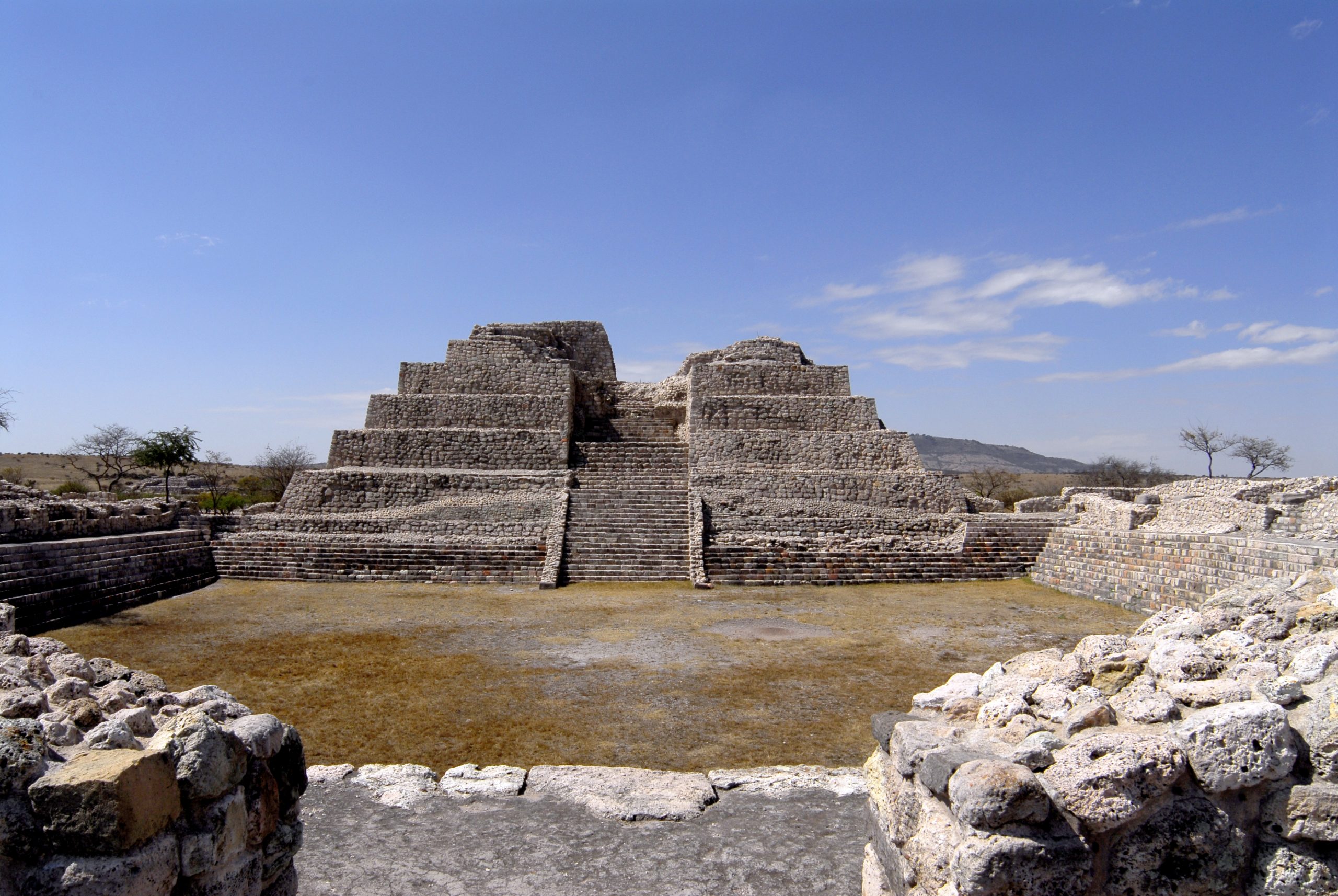 Finalmente, Cañada de la Virgen se alza en la cima de una loma rodeada de profundas cañadas. Su apogeo ocurrió entre 640 y 900 d.C. y su traza urbana refleja un profundo conocimiento de los ciclos cósmicos. Destaca la Casa de los Trece Cielos, un basamento piramidal de 15 metros de altura que delimita un amplio patio hundido. Este sitio fue un importante centro de observación astronómica para comunidades agrícolas que también practicaban la caza, la recolección y el intercambio ritual con otras regiones mesoamericanas.
