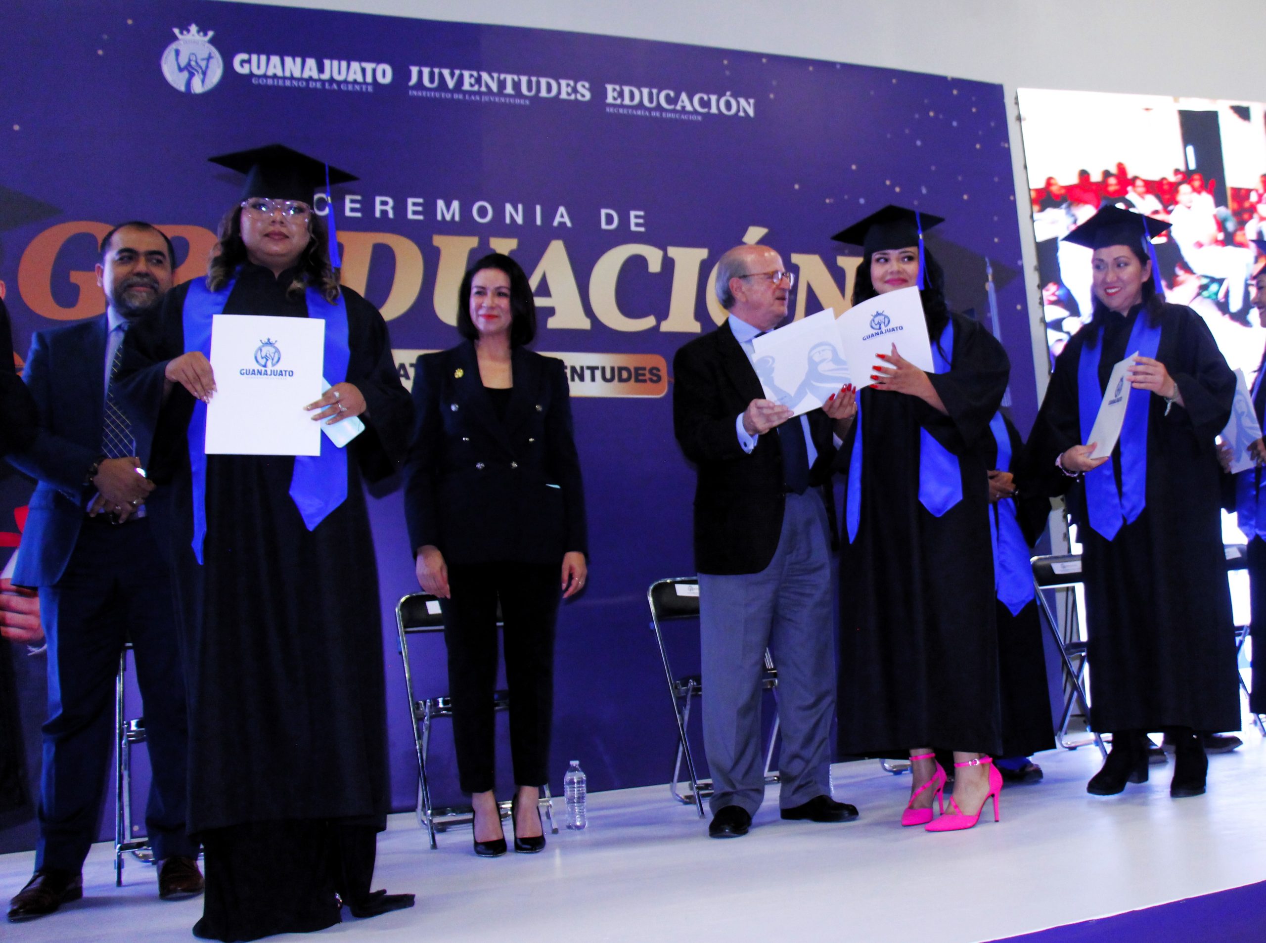 En el acto estuvieron presentes autoridades estatales, representantes de Juventudes Guanajuato, docentes, directivos y familias, quienes celebraron las historias de esfuerzo y superación de cada graduado.